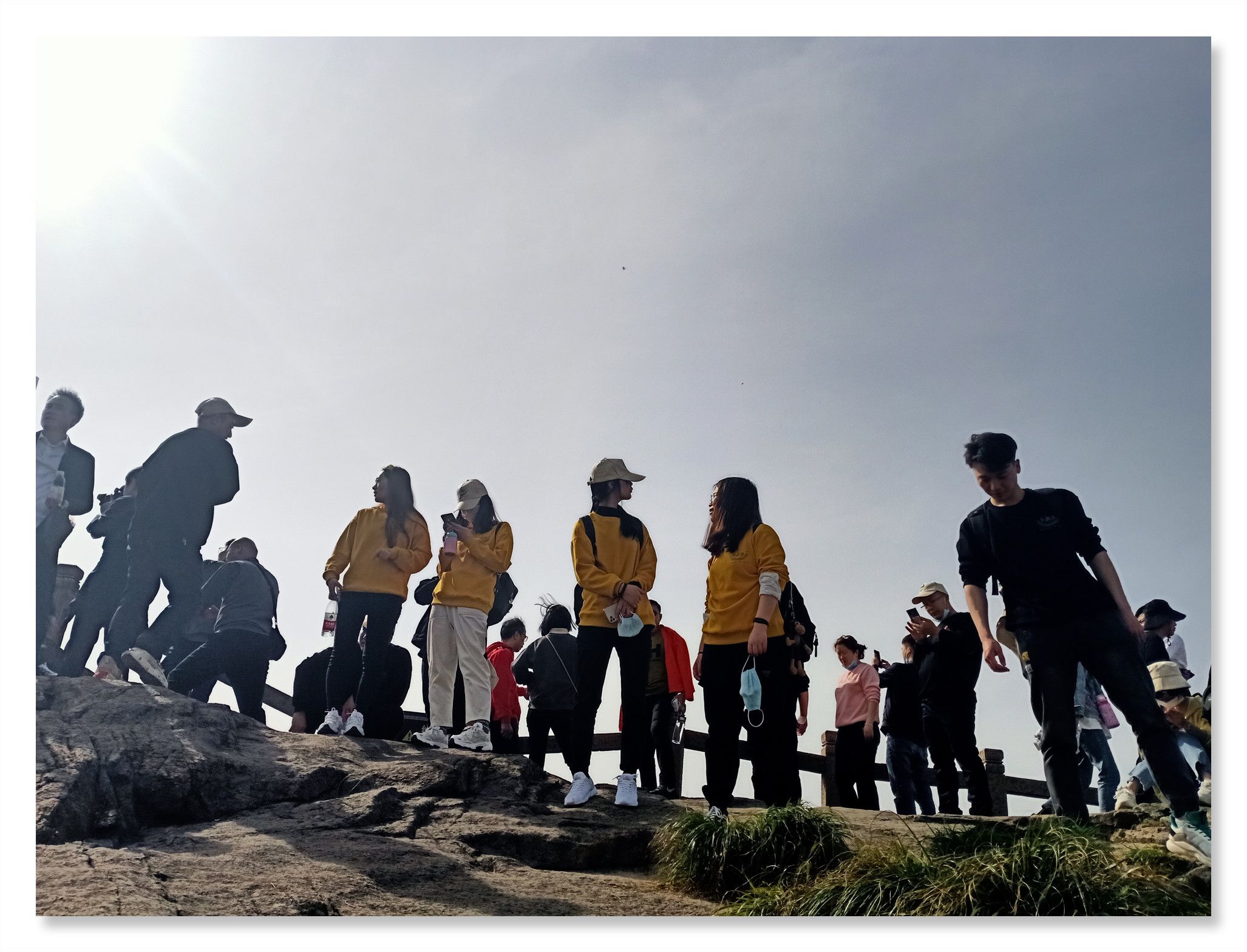 行程第一天,大家在導(dǎo)游的帶領(lǐng)下游覽了花臺(tái)景區(qū)。景區(qū)內(nèi)風(fēng)光壯美,景色綺麗,以奇峰怪石、云海霧凇、花的海洋而著稱(chēng),素有“靈山九華,美在花臺(tái)”的說(shuō)法。景區(qū)內(nèi)有我國(guó)品種集中的稀有高山杜鵑花,紅、黃、白、紫等爭(zhēng)相綻放,爭(zhēng)奇斗艷,鑲嵌在山野絕壁中,宛若“天街花市”,儼然一副華美的山水畫(huà)。然而山上這個(gè)時(shí)節(jié)的杜鵑花仍是花骨朵兒,大家并未得觀百花爭(zhēng)艷的絕美景色。不過(guò)山上奇特的地質(zhì)地貌,神奇地構(gòu)成了九華山著名的“天然睡佛”奇觀。大家圍繞睡佛時(shí)而奮力攀登、時(shí)而漫步臨山棧道。登臨花臺(tái)頂,一覽九華全景,更可以“親近睡佛,聆聽(tīng)佛音”,與神奇的“睡佛”零距離接觸,得大佛護(hù)持、倍感靈氣。